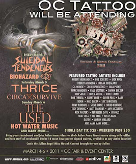 This years Musink should be a good one, a bunch a great tattoo artist will be attending there with cool bands like The Used, Thrice just to name a few, OC Tattoo Inc will have three spots at this convention along with Element Tattoo Supply Inc. so remember to stop by and say hello.